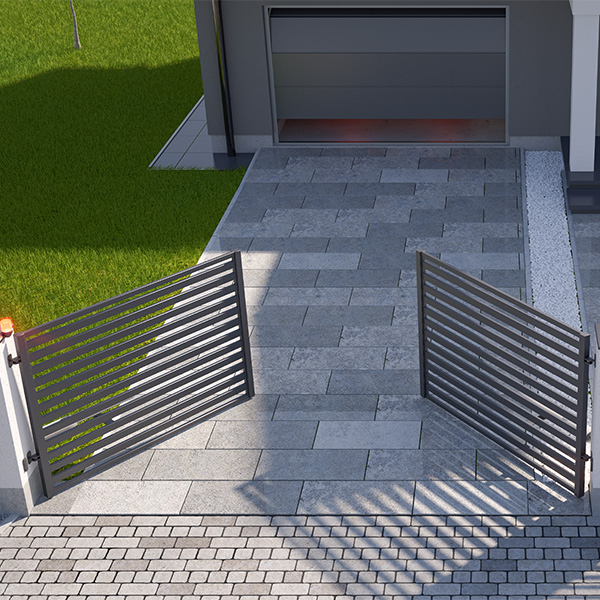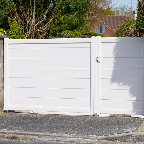 Sur-mesure, s’adapte parfaitement aux rues en pentes, le portail à battant est généralement constitué de deux vantaux s’ouvrant vers l’intérieur. Options possibles : visiophone, digicode, association possible avec la porte de garage.