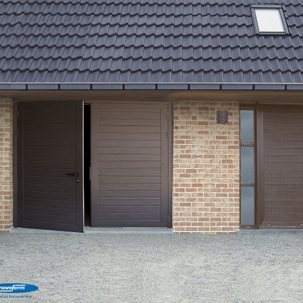 La porte de garage battante est manuelle. Composée de deux battants, elle est aussi sécurisée qu’une porte d’entrée et n’encombre pas l’intérieur du garage.